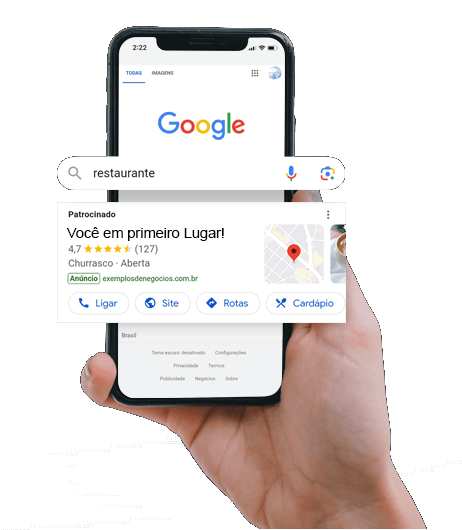 Seu anúncio pode ser exibido na maior plataforma de buscas do mundo no momento exato em que uma pessoa estiver pesquisando produtos e serviços como os seus.